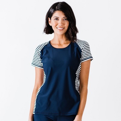 Calypsa Women's Loose Fit Short Sleeve UPF 50+ Adele Swim Top