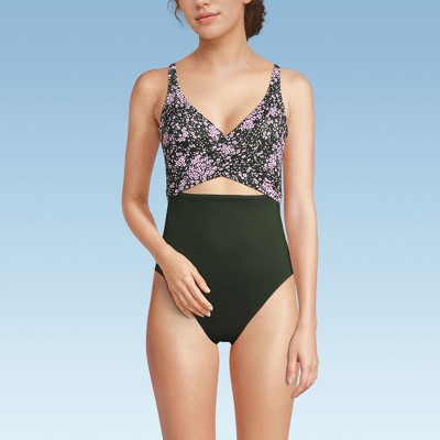 Lands' End Women's Wrap Monokini High Leg One Piece Swimsuit