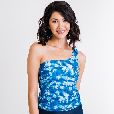 Calypsa Women's One Shoulder Layla Crop Swim Top WIth Built In Bra