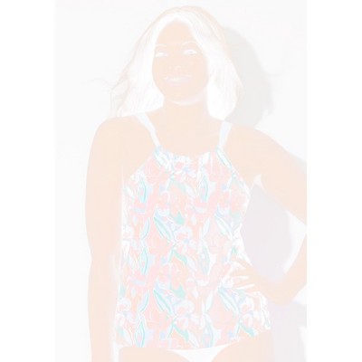 Lands' End Women's Blouson Tummy Hiding Tankini Top Swimsuit Adjustable Straps
