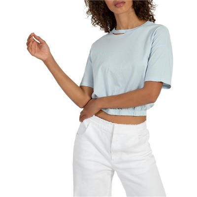 bar III Womens Runched Shoulder Basic T-Shirt