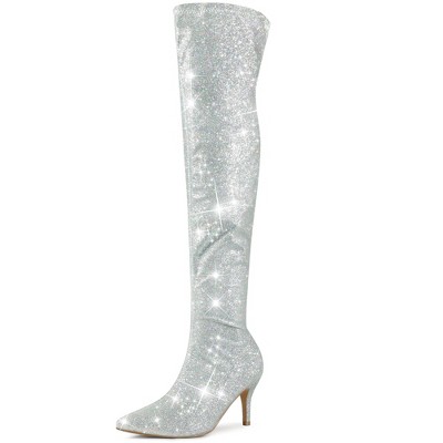 - silver knee high boots glitter