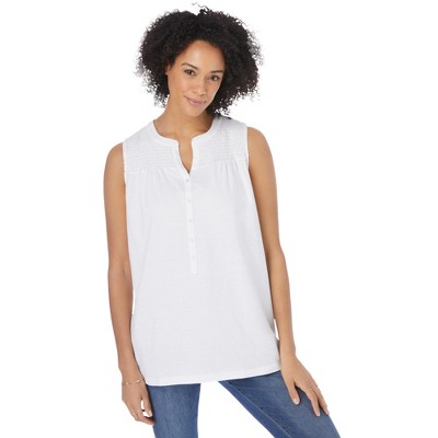 Woman Within Smocked Henley Tank Top