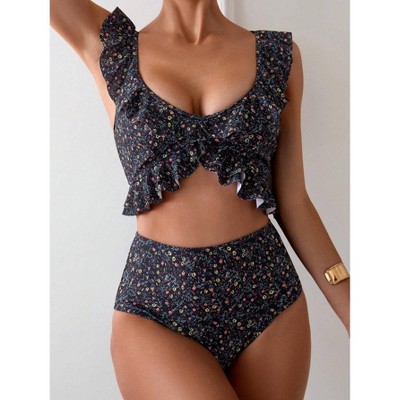 Women's Plus Size Two Piece Bikini Set Asymmetric Floral Printed Swimwear