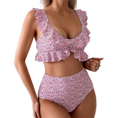 Plus Size Two Piece Bikini Set Asymmetric Floral Printed Swimwear