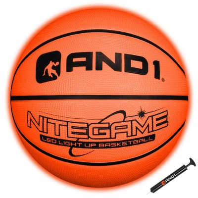 AND1 Nitegame LED Light Up Basketball, Glow in The Dark, Regulation Size 7 (29.5”), Made for Indoor/Outdoor, Sold Deflated, Orange/Black