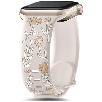 HTUTWOO Floral Band Compatible with Apple Watch Bands 38/40/41/42mm, Flower Engraved Silicone Inlay Dressy Strap for iWatch Series Ultra