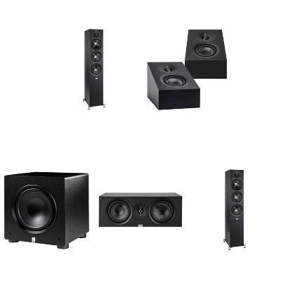 Elac DF53-BK - Debut 3.0 5.25" Floor Speaker - Black (Pair), ELAC DA43-BK Debut 3.0 - DA43-BK Atmos / On Wall speaker, Elac PS350 Subwoofer and Ela...
