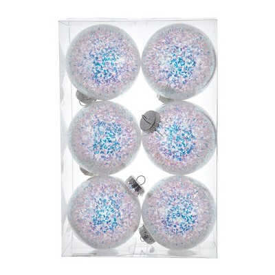 Kurt Adler 100MM 6pc Shatterproof Iridescent Glittered Ball Ornaments