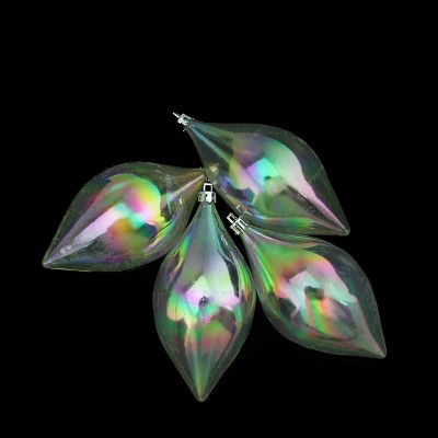 Northlight 4ct Clear Shatterproof Iridescent Christmas Teardrop Finial Ornaments 5.25"