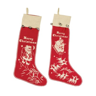 Primitives by Kathy Merry Christmas Vintage Style Large Felt Stockings with Bell Set of 2,Red
