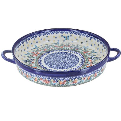 Blue Rose Polish Pottery 182 Vena large Round Baker with Handles