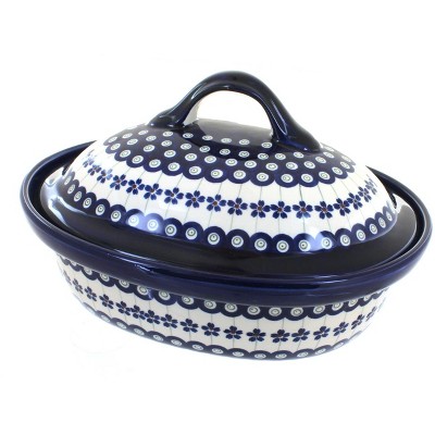 Blue Rose Polish Pottery 278 Ceramika Artystyczna Covered Round Baker