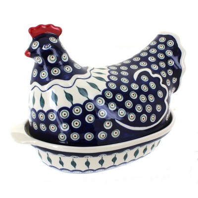 Blue Rose Polish Pottery 505 Vena Small Hen Baker