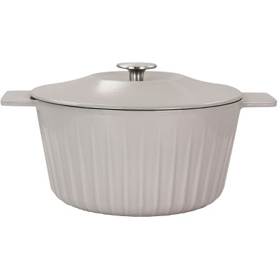 Gibson Enameled Cast Iron 5 Quart Embossed Stripe Dutch Oven with Lid in Warm Grey