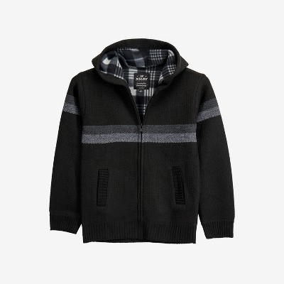 X RAY Boy's Hooded Flannel Lined Full Zip Sweater With Stripes