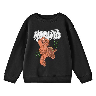 Naruto Single Color Leaping Naruto Crew Neck Long Sleeve Youth Black Sweatshirt