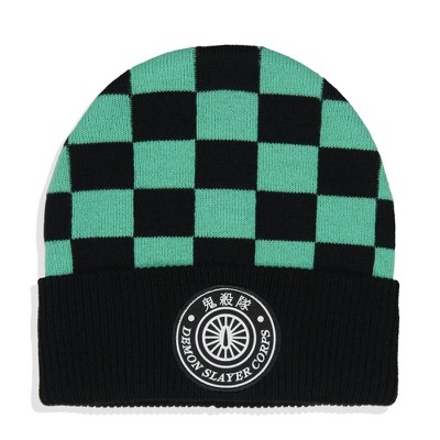 Demon Slayer Adult Tanjiro Embroidered Patch Knit Cuff Beanie Cap Hat for Men And Women Multicolored