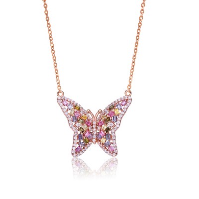 Guili Sterling Silver Necklace with Rose Plating and Vibrant Multi-Color Cubic Zirconia Butterfly Pendant for a Playful Jewelry Accent