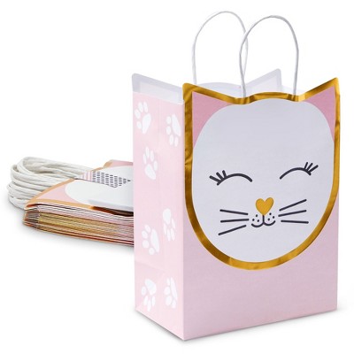 Sparkle and Bash 15 Pack Cat Gift Bags for Birthday Party Favors w/ 20 Sheets of Tissue Paper, 8 x 10 x 4.7 In