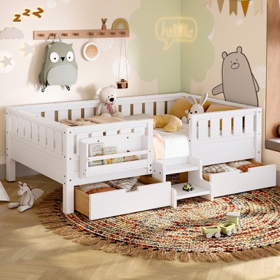 Whether your little escape artist has outgrown her old crib, or you need to use it for the new baby, it’s time to bring on the big-kid bed. The right bed for your toddler can help set up a playful little room for your kiddo to sleep and have fun in. Target has a collection of the cutest toddler beds with a host of your kid’s favorite Disney characters to keep them company. From convertible cribs with mattresses to classic sleigh toddler beds, the choices are plenty. Most of these designs boast built-in side rails and sit low to the ground making them easily accessible and perfectly safe for your little ones. Some super-functional pieces even come with storage spaces or drawers so you don’t have to invest in a lot of other furniture. You could even consider tent-style beds for a theme nursery, or twin bunk beds if you want to tuck in your older kids together. Make bedtimes more exciting with a dreamy toddler bed that gets your child to rush to bed each night.