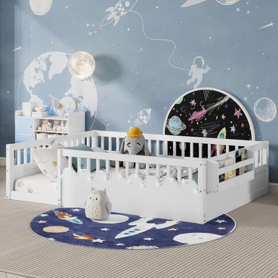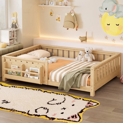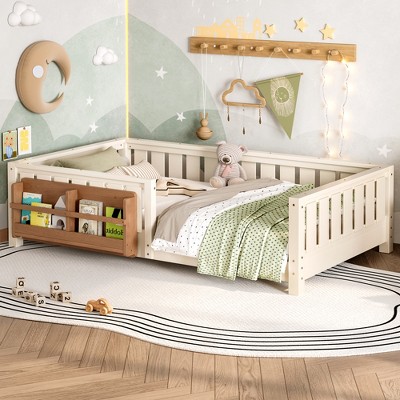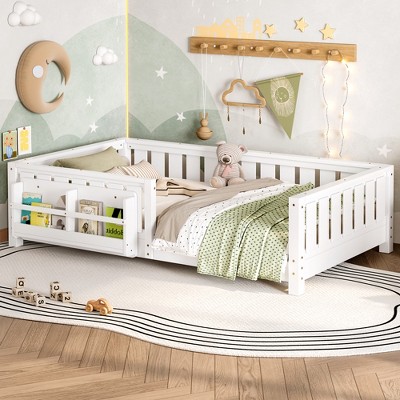 Racxily Floor Bed with Slats Fence and Door Montessori Style No Box Spring Needed