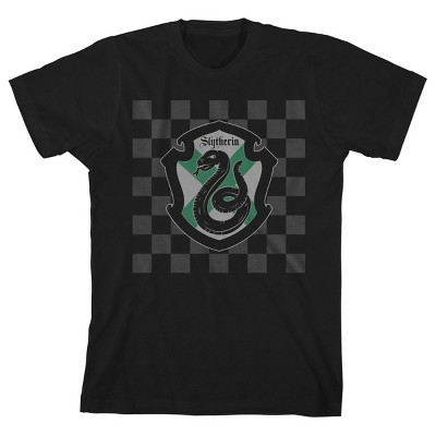 Harry Potter Slytherin Shield on Checkered Background Black T-shirt Toddler Boy to Youth Boy