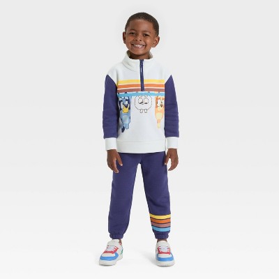 Toddler Boys' 2pc Bluey Bingo Fleece Quarter Zip Pullover and Bottom Set - Navy Blue