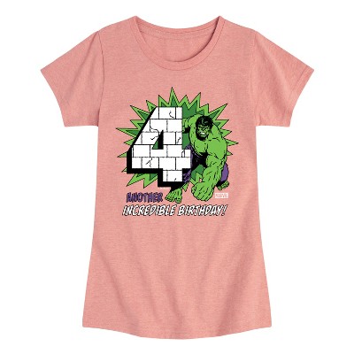 Girls' - Marvel - Hulk Incredible Birthday 4 Fitted Short Sleeve Graphic T-Shirt