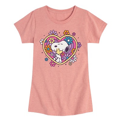 Girls' - Peanuts - Hug Heart Flower Fitted Short Sleeve Graphic T-Shirt