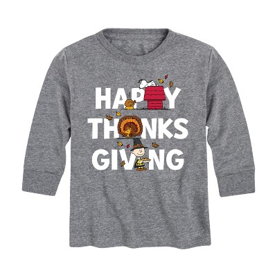 Boys' - Peanuts - Happy Thanksgiving Icons Long Sleeve Graphic T-Shirt