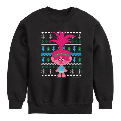 Boys' - Trolls - Poppy Blue Green Ugly Sweater Graphic Long Sleeve Fleece Sweatshirt