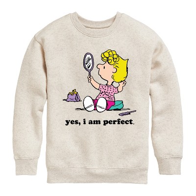 Boys' - Peanuts - Yes I Am Perfect Sally Graphic Long Sleeve Fleece Sweatshirt
