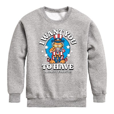 Boys' - Garfield - Want You To Have A Happy Fourth Graphic Long Sleeve Fleece Sweatshirt