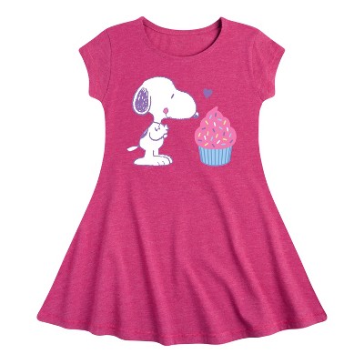Girls' - Peanuts - Snoopy Heart Cupcake Fit & Flair Cap Sleeve Graphic Dress