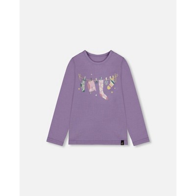 Deux par Deux Girl Organic Cotton Jersey Top Purple Gray with Owl