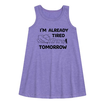 Girls' - Peanuts - Tired Tomorrow Graphic Sleeveless Aline Dress