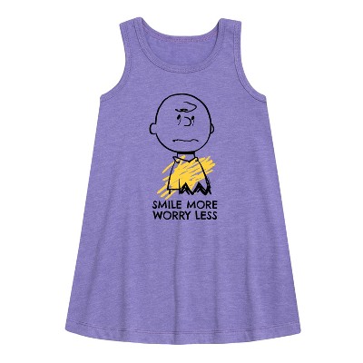 Girls' - Peanuts - Smile More Worry Less Graphic Sleeveless Aline Dress