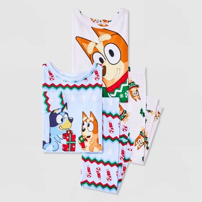 Toddlers' 4pc Bluey Cotton Long Sleeve Christmas Pajama Set - Cream/Blue