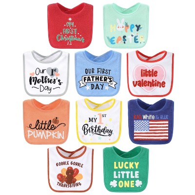 The Peanutshell Holiday Terry Bib Set for Baby Girls and Boys | 10 pack for Feeding, Teething, & Drooling