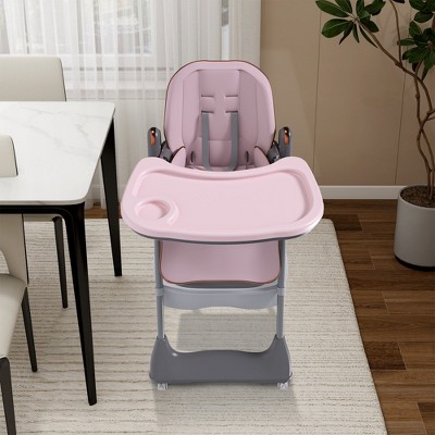 Angel Sar Adjustable Baby High Chair 0-6 Years, Portable Infant Feeding Seat with Safety Belt & Wheels for Home Use