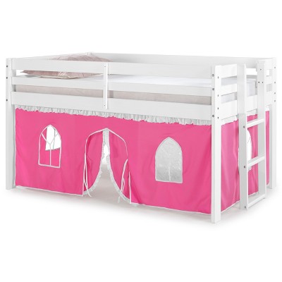 Jasper Twin Junior Loft Bed White Frame and Pink/White Bottom Playhouse Tent