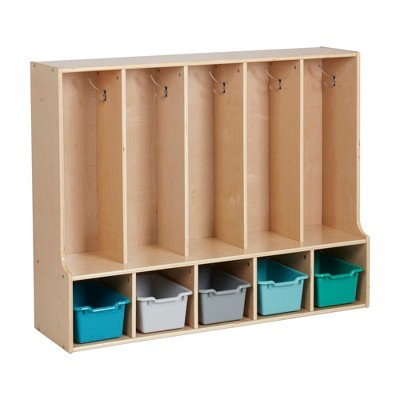 ECR4Kids 5-Section Coat Locker and Scoop Front Storage Bins, Natural