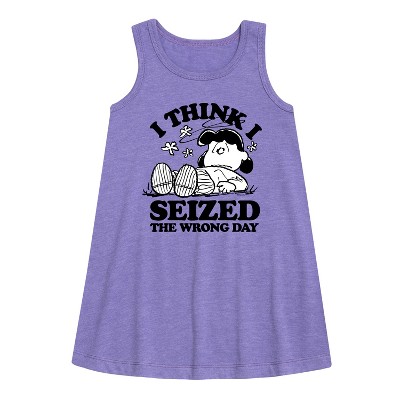 Girls' - Peanuts - Lucy I Seized The Wrong Day Graphic Sleeveless Aline Dress