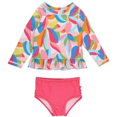 RuffleButts Baby Girls UPF50+ Long Sleeve Rash Guard Bikini