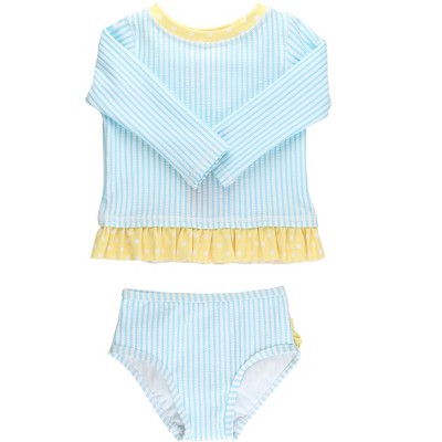 RuffleButts Baby Girls UPF50+ Seersucker Long Sleeve Rash Guard Bikini