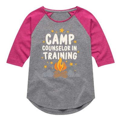 Girls' - Instant Message - Camp Counselor In Training Shirt Tail Raglan Graphic T-shirt