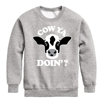 Boys' - Instant Message - Cow Ya Doin Graphic Long Sleeve Fleece Sweatshirt