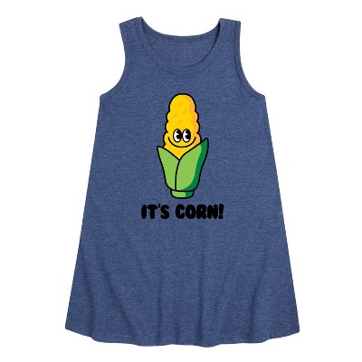 Girls' - Instant Message - It's Corn Graphic Sleeveless Aline Dress