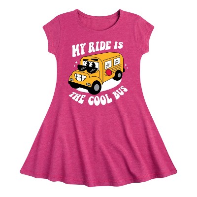 Girls' - Instant Message - Cool School Bus Fit & Flair Cap Sleeve Graphic Dress